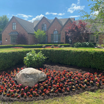 Total yard renovation. Tore out majority of existing plants, simplified design, adding mixture of perennial and annual plant life, added accent boulders, and solved a drainage issue with rock bed.