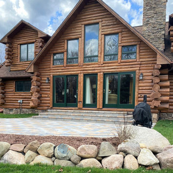 Outdoor Entrance, outdoor stone kitchen, and stone stairway added.
